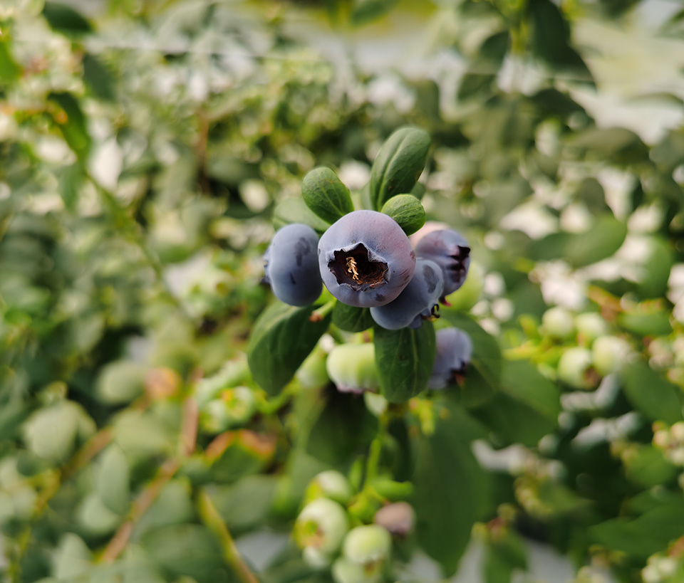 Blueberries have a shallow, compact root system—roughly half of the roots sit in the top foot of soil, concentrated close to the crown—which makes them highly sensitive to both drought and waterlogging. Uniform, lightly moist (not wet) conditions are essential, and maintaining acidic soils (pH ~4.5–5.5) underpins nutrient uptake and plant vigor. Consistent soil moisture during fruit fill also reduces splitting.